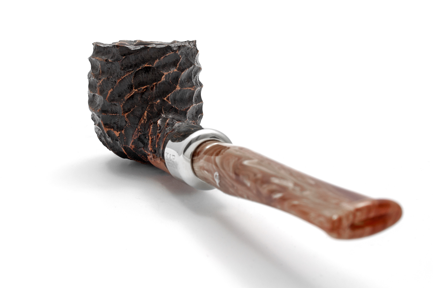 Kommen wir zurück: Neben der Rustizierung erweist sich das karamellweiße Mundstück der Serie Derry als besonders prägnant. Es harmoniert wunderbar mit der hellen Bi-Kolorierung des Pfeifenkopfes. Auch wenn man bei dieser Farbkomposition Appetit bekommt – nur draufbeißen, nicht reinbeißen!