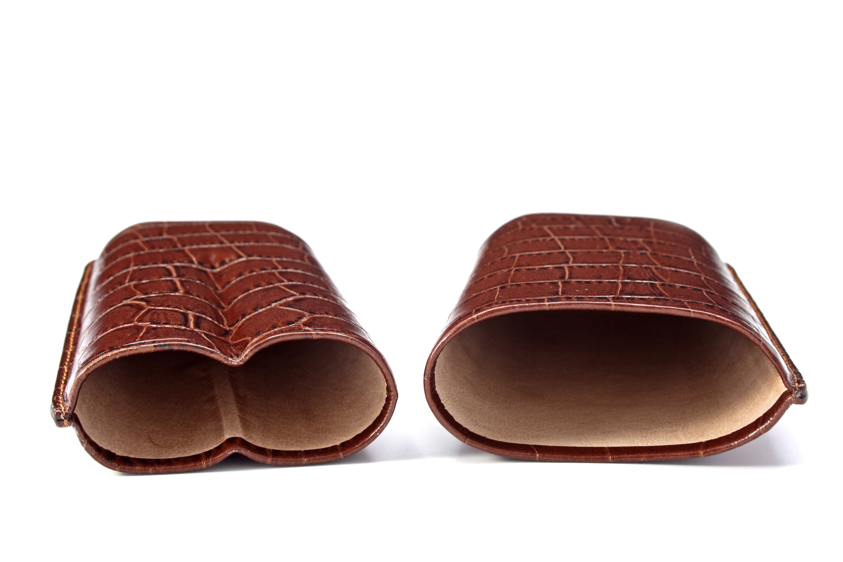 Unsere Bestsellerserie aus Rindsleder ist sowohl in glatt als auch in einer Vielzahl eleganter Prägungen erhältlich. Die Etuis sind variabel, mit hauchdünnem Ziegenleder ausgeschlagen, dessen Geruch sich wunderbar mit dem der Zigarre vermählt. Die Naht des Etuis ist dünn und elegant. Sie verläuft lediglich um das halbe Etui und ist damit besonders aufwendig. Die Etuis sind Zeugnis größter Sattlerkunst.