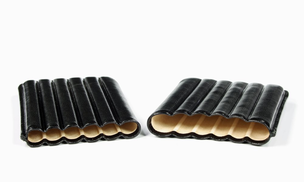 Die Etuis sind variabel, mit hauchdünnem Ziegenleder ausgeschlagen, dessen Geruch sich wunderbar mit dem der Zigarre vermählt. Die Naht des Etuis ist dünn und elegant. Sie verläuft lediglich um das halbe Etui und ist damit besonders aufwendig. Die Etuis sind Zeugnis größter Sattlerkunst.