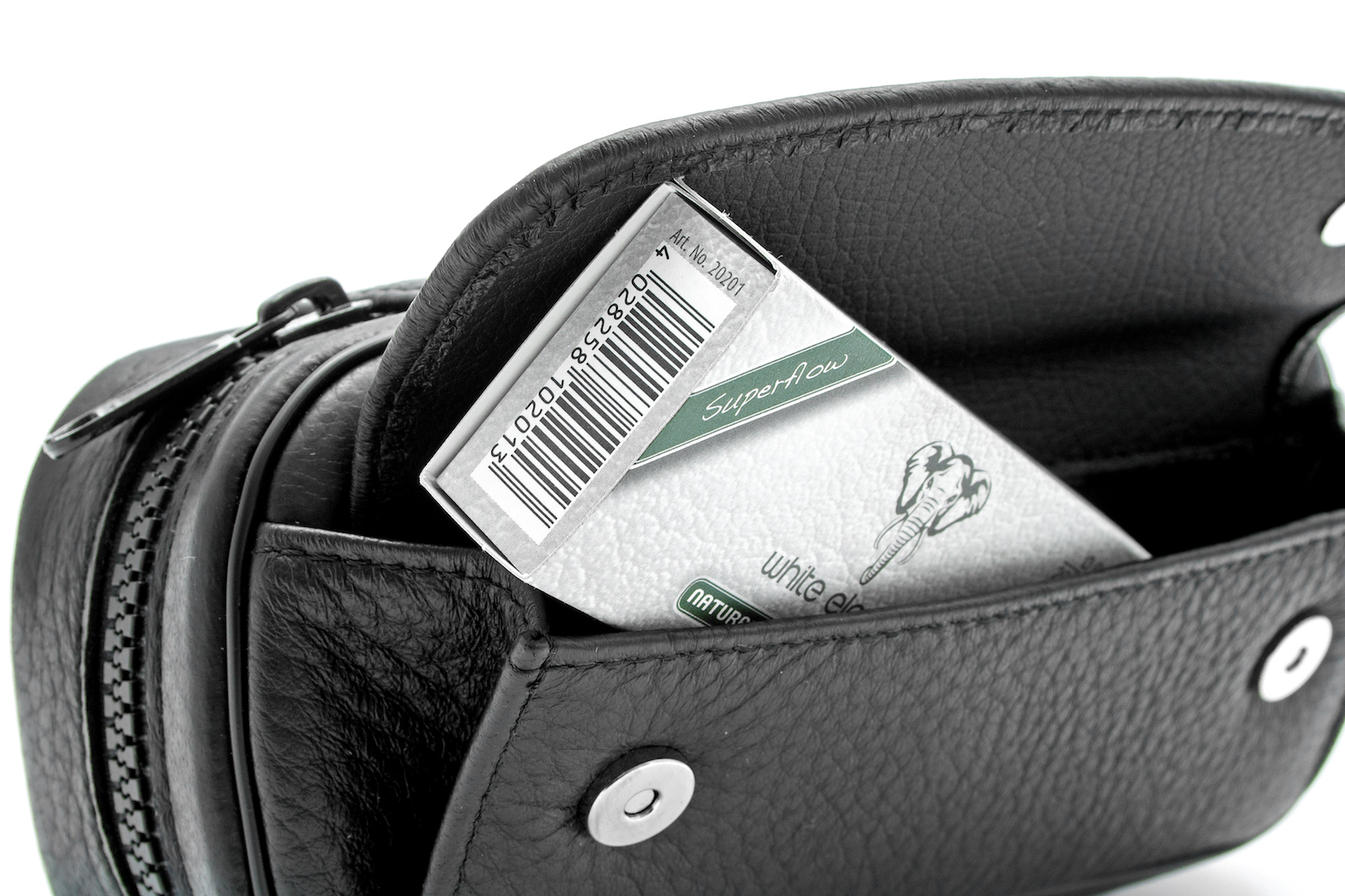 Dieses Produkt wird aus feinstem finnischem Hirschleder hergestellt. Es hat einen weichen und seidigen Griff. Das luxuriöse Leder ist perfekt eingeschlagen, die Nähte sind präzise. Ein Zeugnis bester deutscher Feintäschnerarbeit. Für zwei Pfeifen, Tabak und Zubehör mit schmaler Vordertascher und abnehmbaren Tragegriff. Belastbarer, aber leichtgängiger YKK Reißverschluss. Extra starke, verchromte Magnete. Verarbeitung in bewährter Wess Qualität. In Offenbach hergestellt.