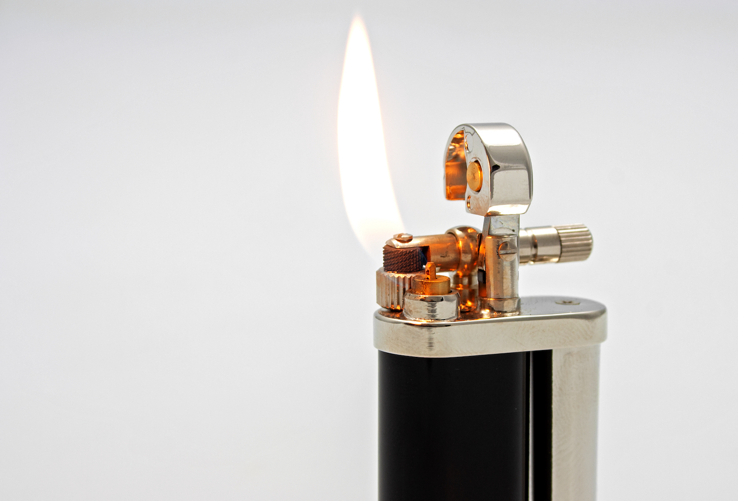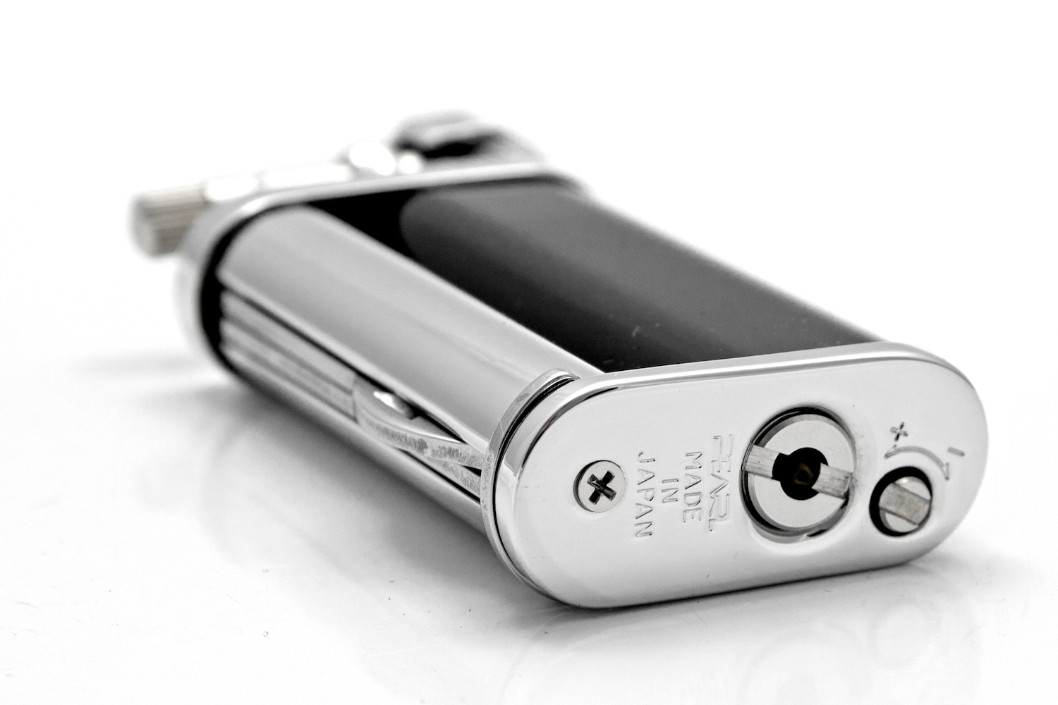 Ein innovatives Pfeifenfeuerzeug vom japanischen Hersteller Pearl. Der massive Messingtank des Modells „Eddie“ fasst ein besonders großes Gasvolumen. Die Düse des Steinzünders verfügt über zwei Ausgänge, wodurch die seitlich austretende Flamme noch weicher und voluminöser wird.