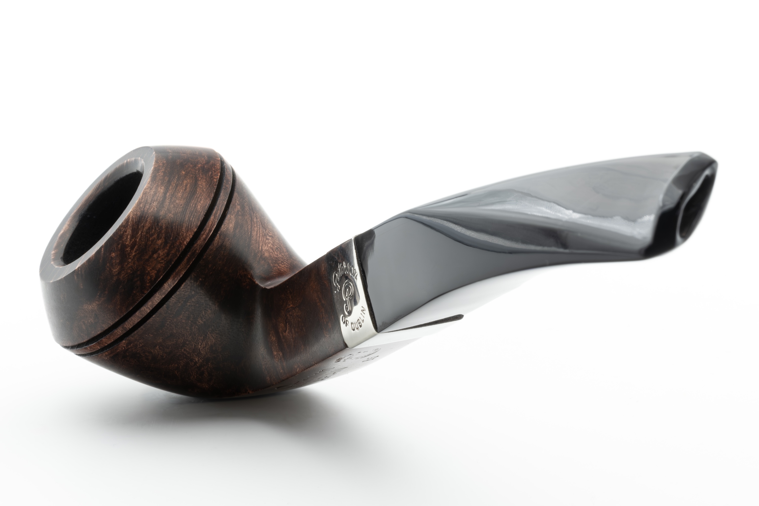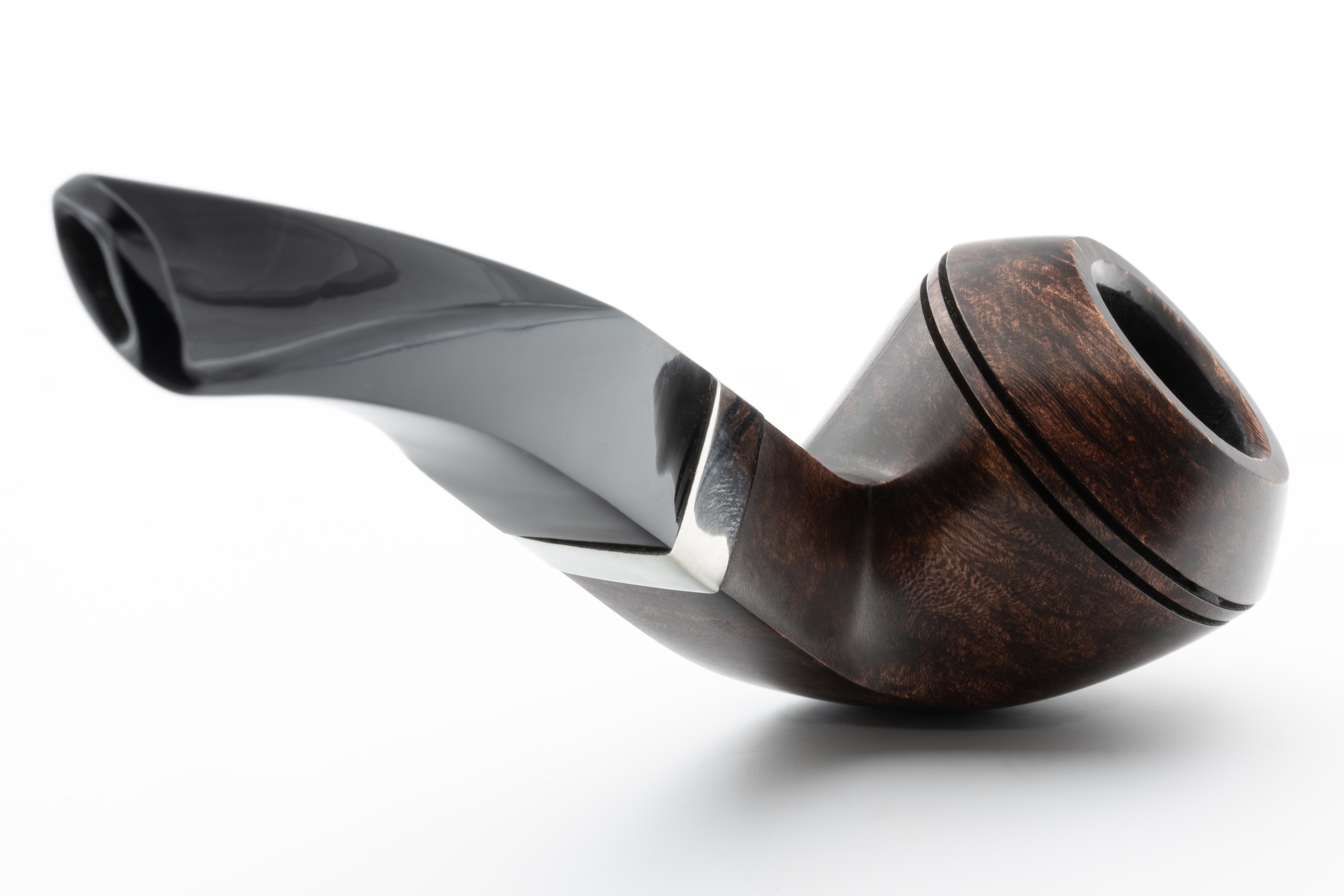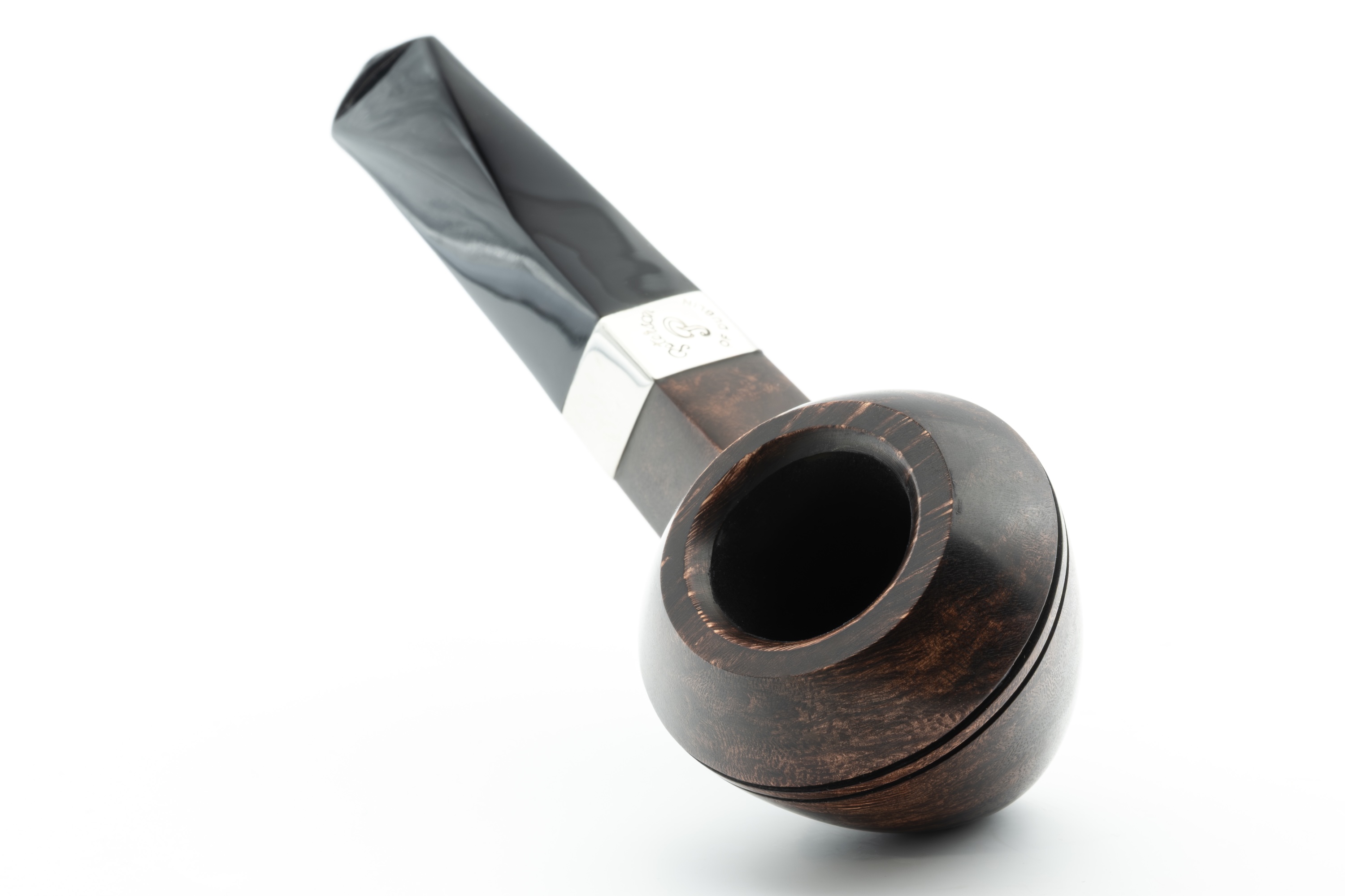 gut zur Geltung kommen. Die Politur mit Carnauba Wachs verleiht der Pfeife einen attraktiven Glanz. Im Ausland wird sie zumeist mit geprägtem Nickelband angeboten. In dieser Variante ist sie nun auch bei uns erhältlich.