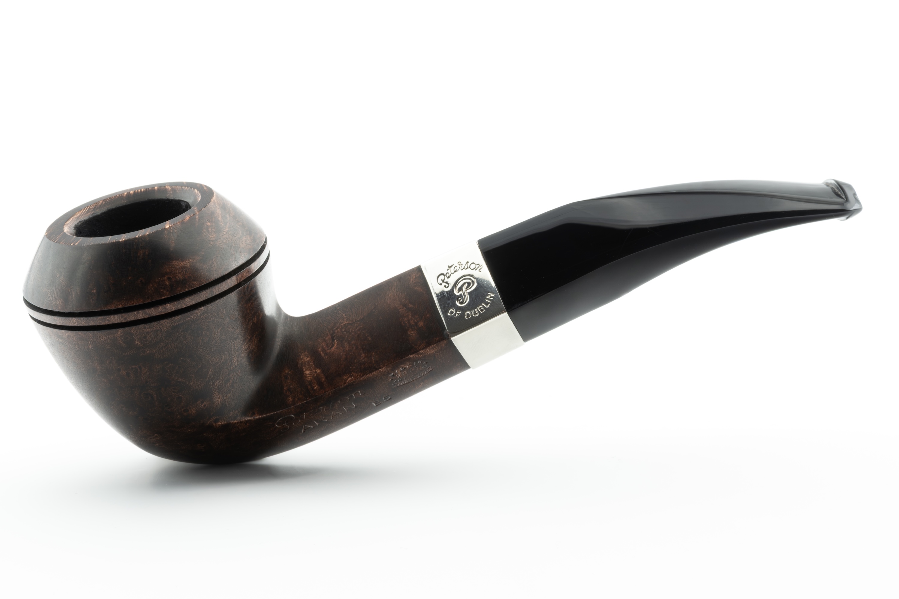 Die Aran Pfeife ist seit Jahrzehnten ein Dauerbrenner im deutschen Peterson Sortiment. Ihr dezenter Braunton lässt die Maserung