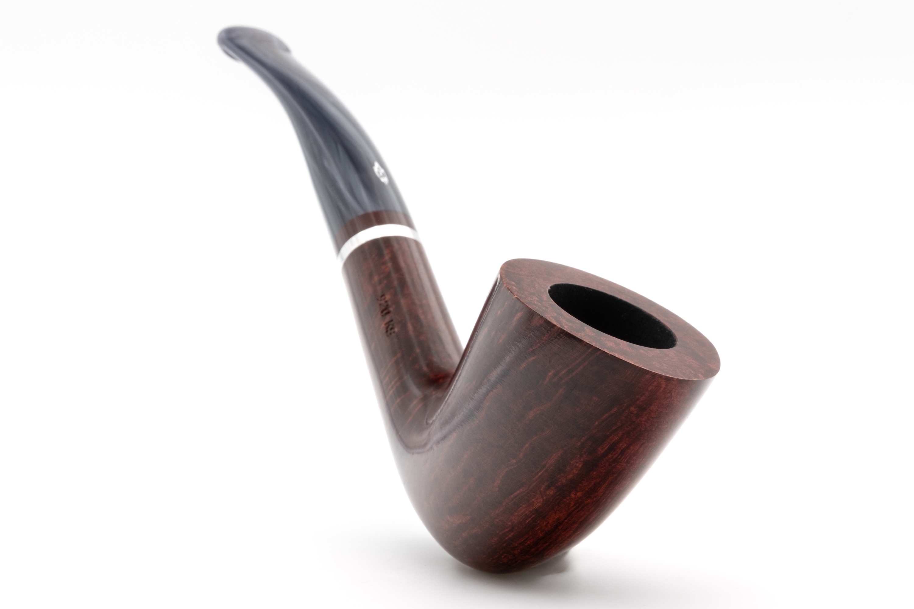 Für sich allein betrachtet strahlt es eine besondere Unnahbarkeit und Kühle aus, ein Eindruck, der durch den eingelassenen Metallring noch verstärkt wird. Im Zusammenspiel mit dem warmen Bordeauxton des Bruyerekopfes ergibt sich jedoch ein spannender Kontrast.