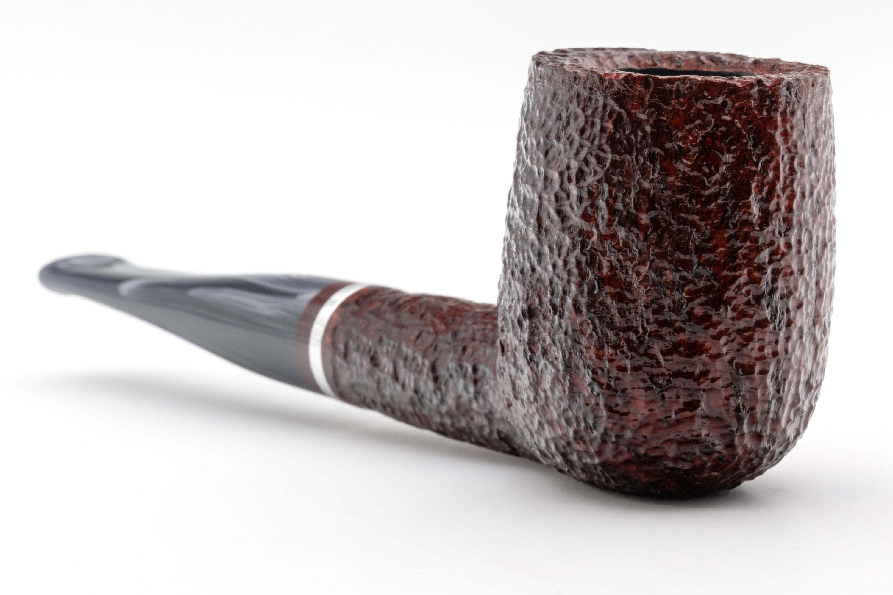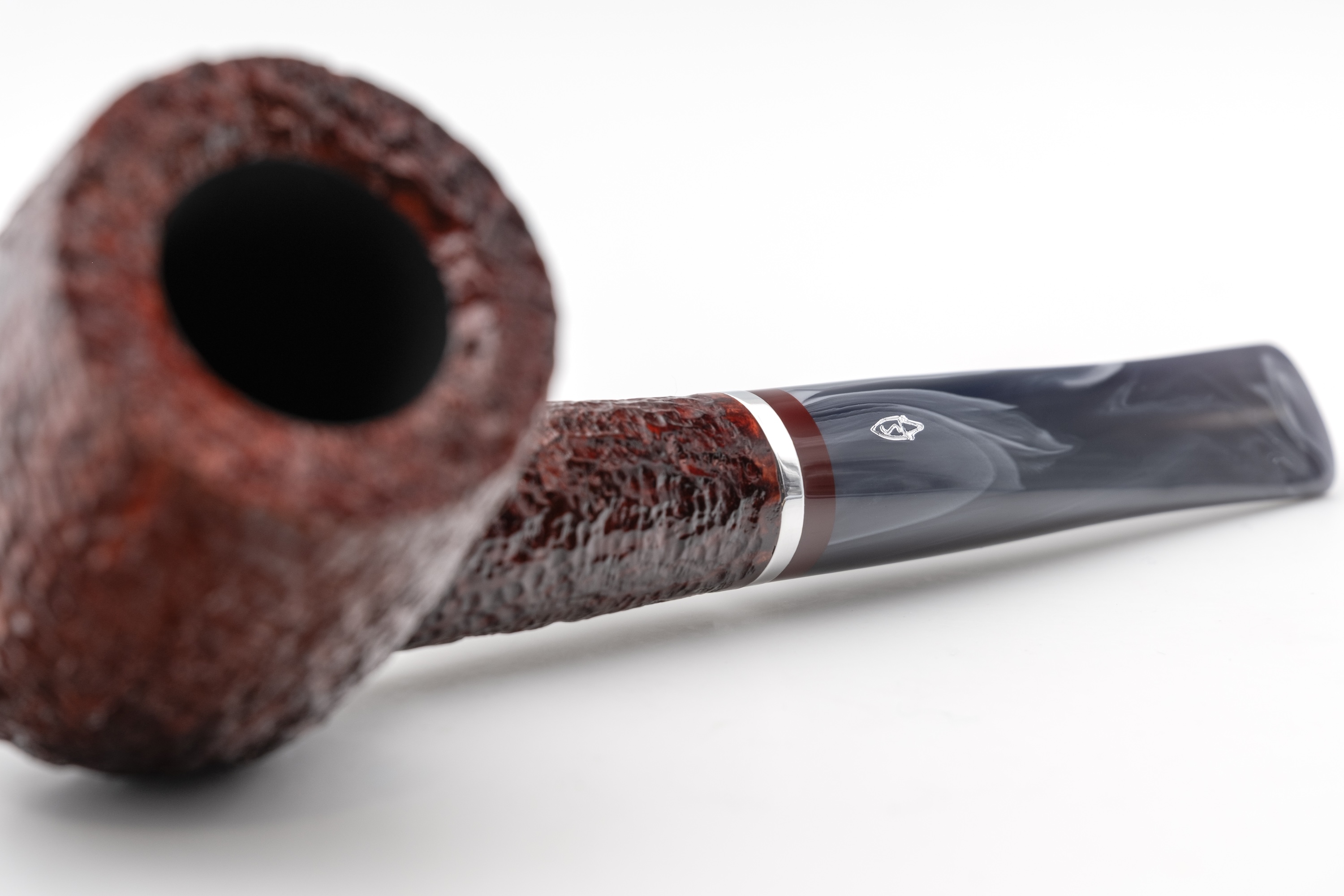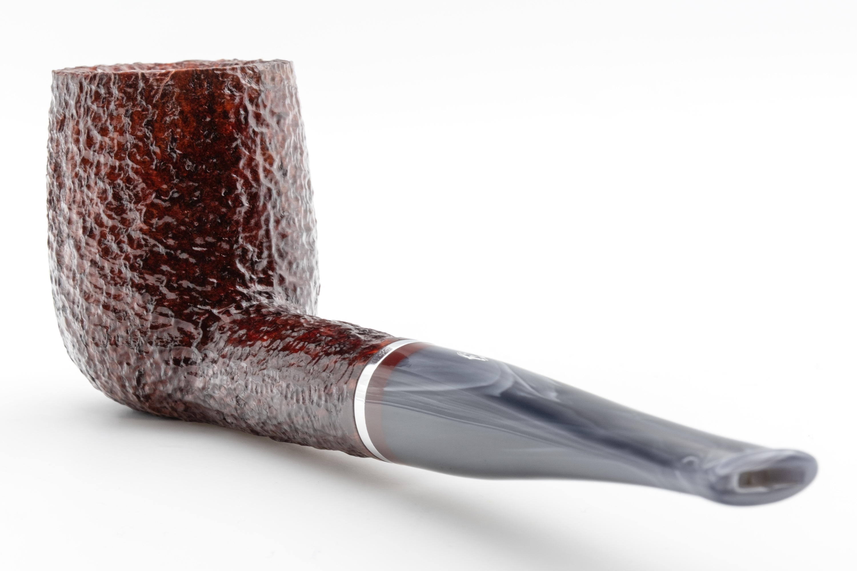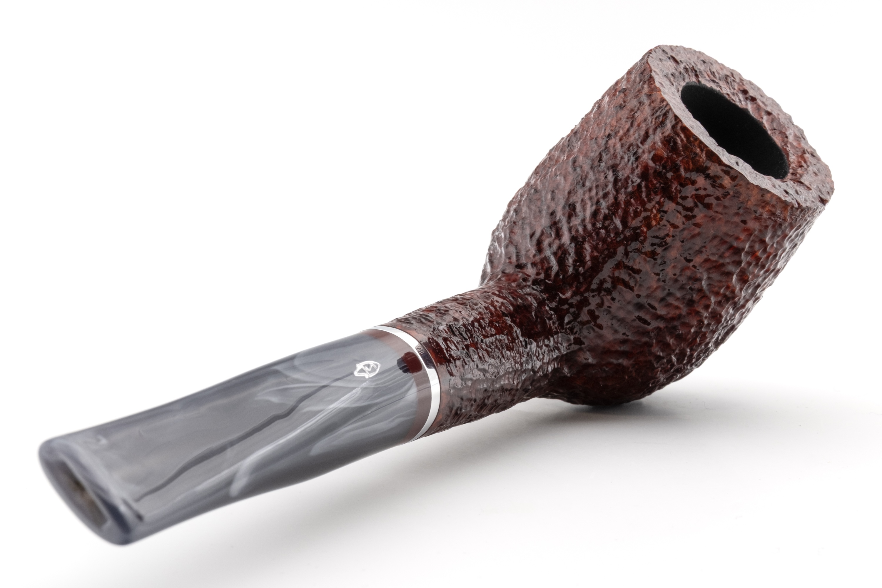 Für sich allein betrachtet strahlt es eine besondere Unnahbarkeit und Kühle aus, ein Eindruck, der durch den eingelassenen Metallring noch verstärkt wird. Im Zusammenspiel mit dem warmen Bordeauxton des Bruyerekopfes ergibt sich jedoch ein spannender Kontrast.