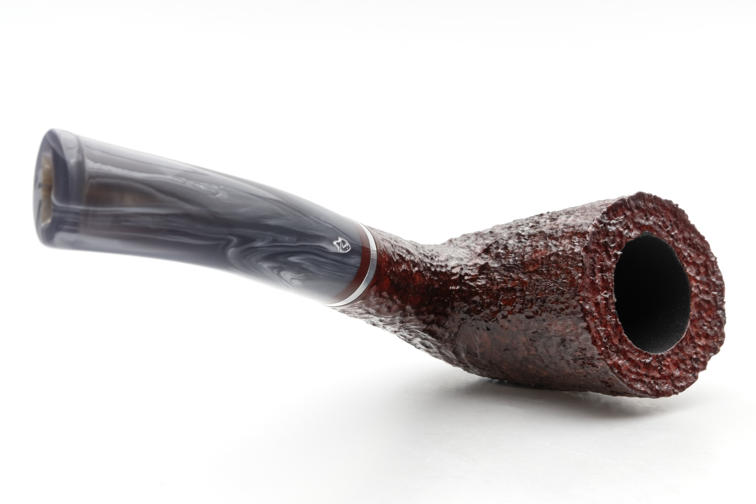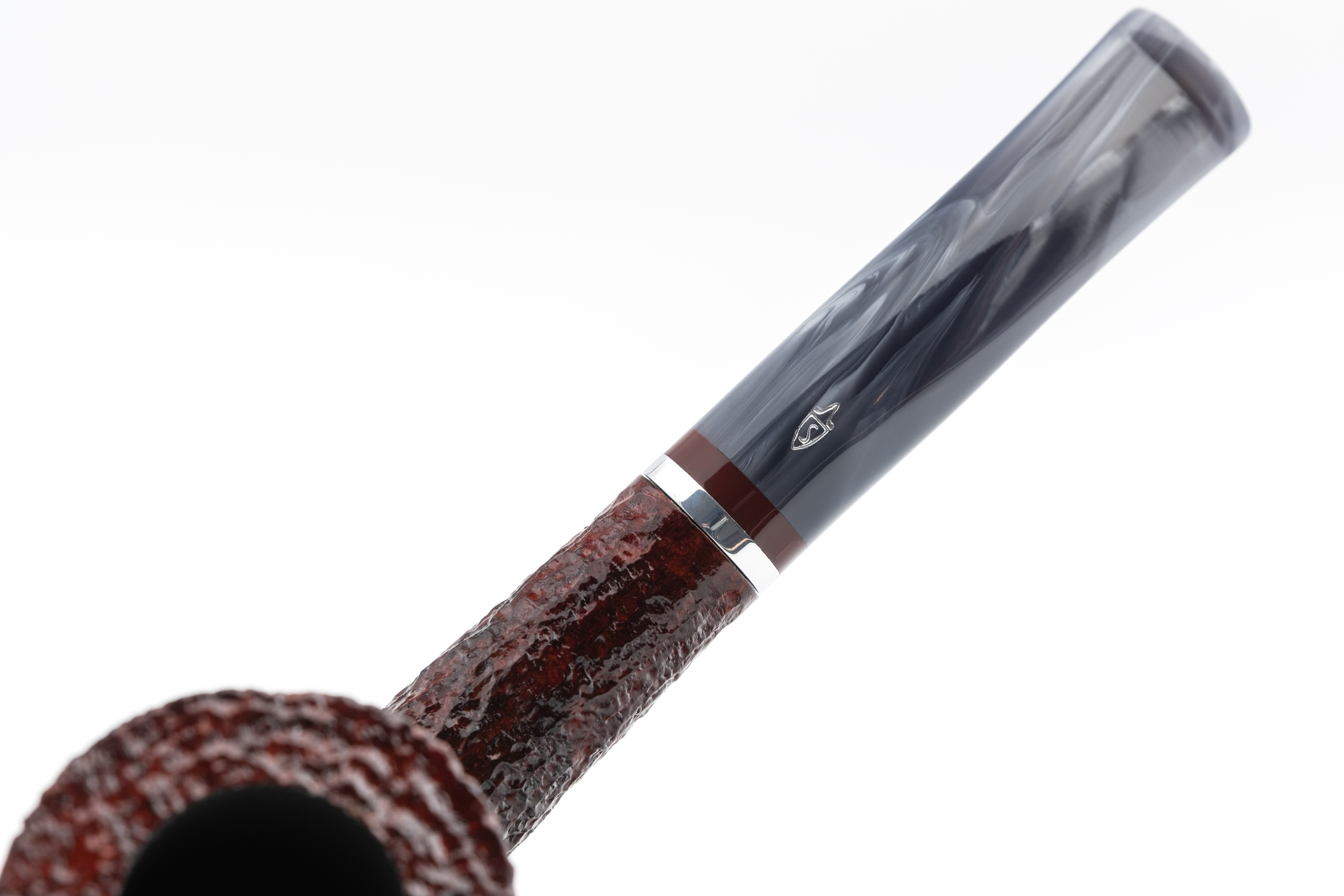 Für sich allein betrachtet strahlt es eine besondere Unnahbarkeit und Kühle aus, ein Eindruck, der durch den eingelassenen Metallring noch verstärkt wird. Im Zusammenspiel mit dem warmen Bordeauxton des Bruyerekopfes ergibt sich jedoch ein spannender Kontrast.